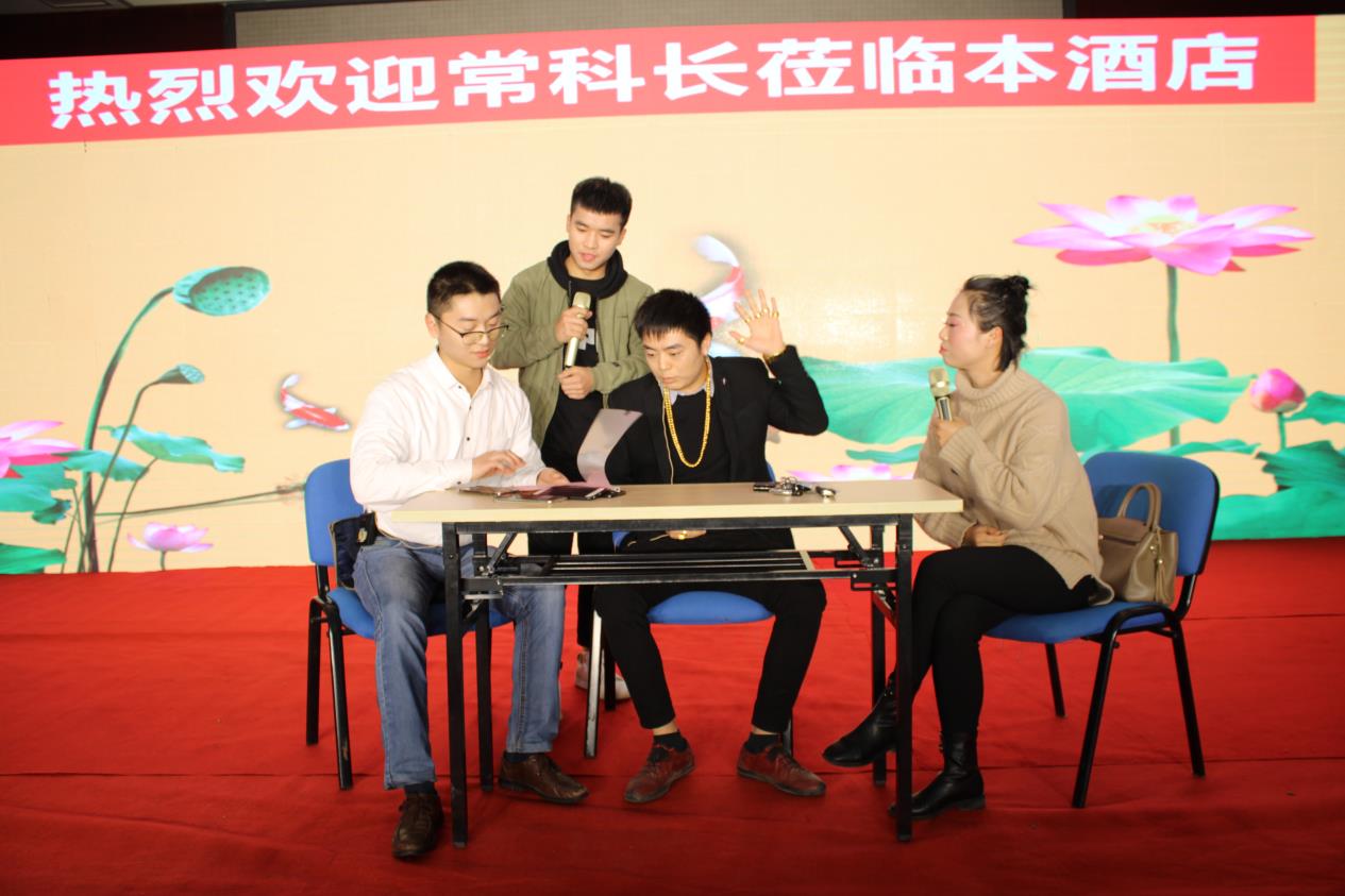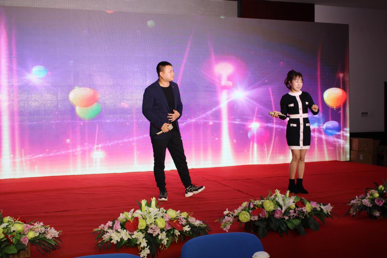 2020年度行政工作會議后,玖源集團(tuán)新春年會晚宴在廣安玖源商貿(mào)有限公司節(jié)目《愛因?yàn)樵谛闹小返木时硌葜欣_帷幕。